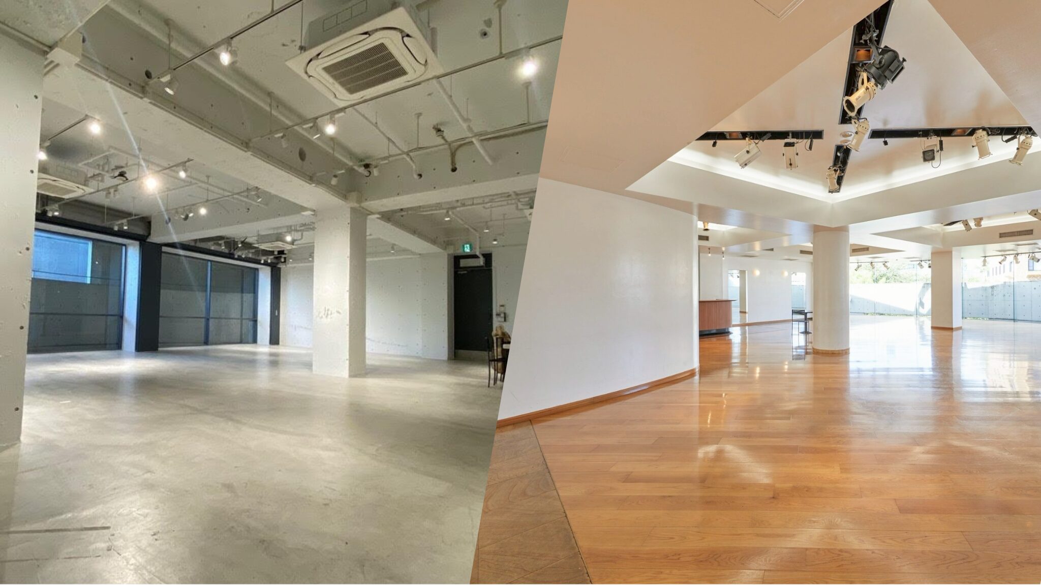 安藤忠雄建築のコレッツィオーネビルの3階にある約200平米の多目的スペースです。立地と地域柄からアパレル業界の展示会でのご利用を多く占める多目的という事でウェディングの二次会や企業パーティー、トークイベントなど幅広いジャンルに役立つスペースとなっております。